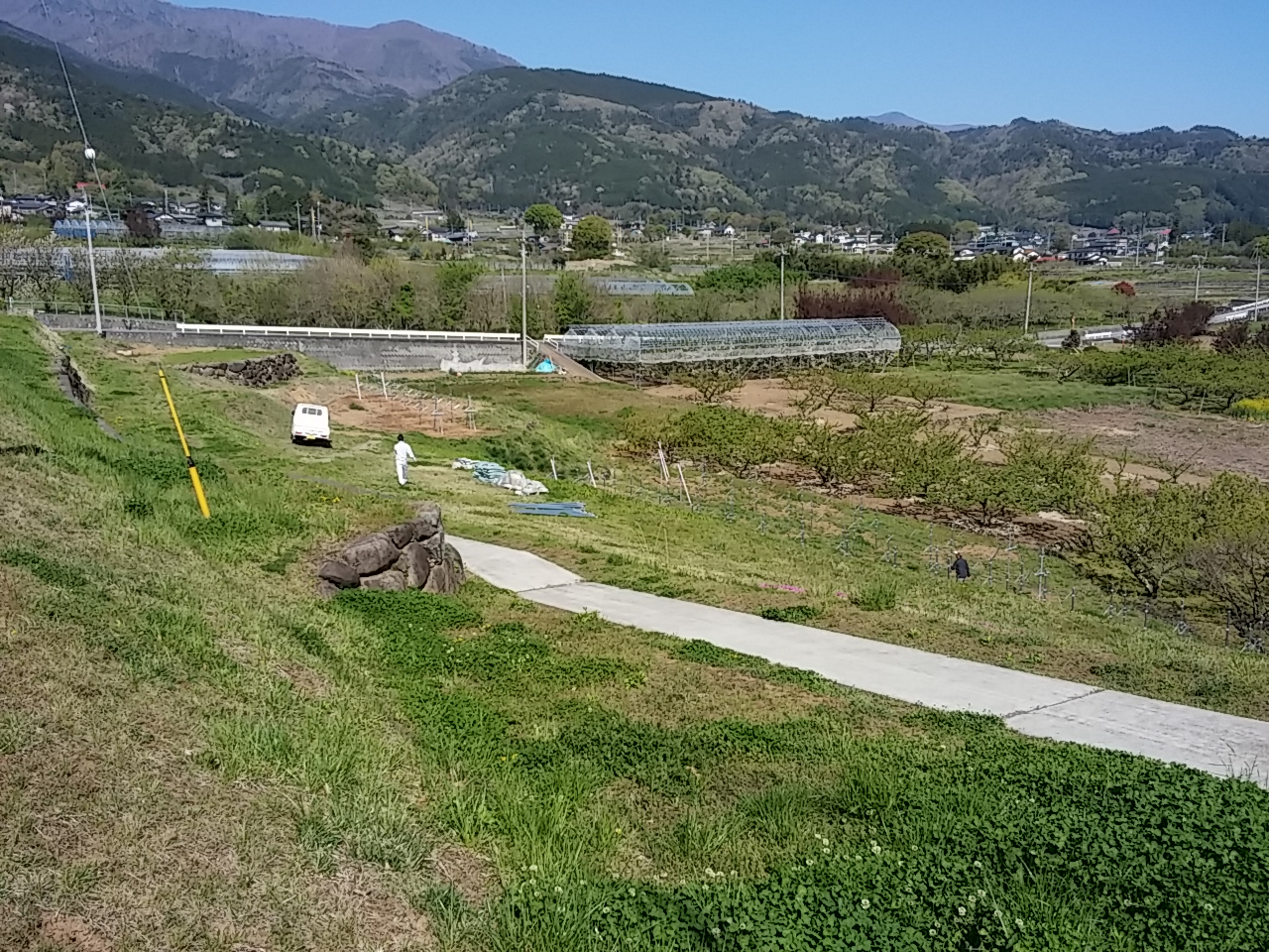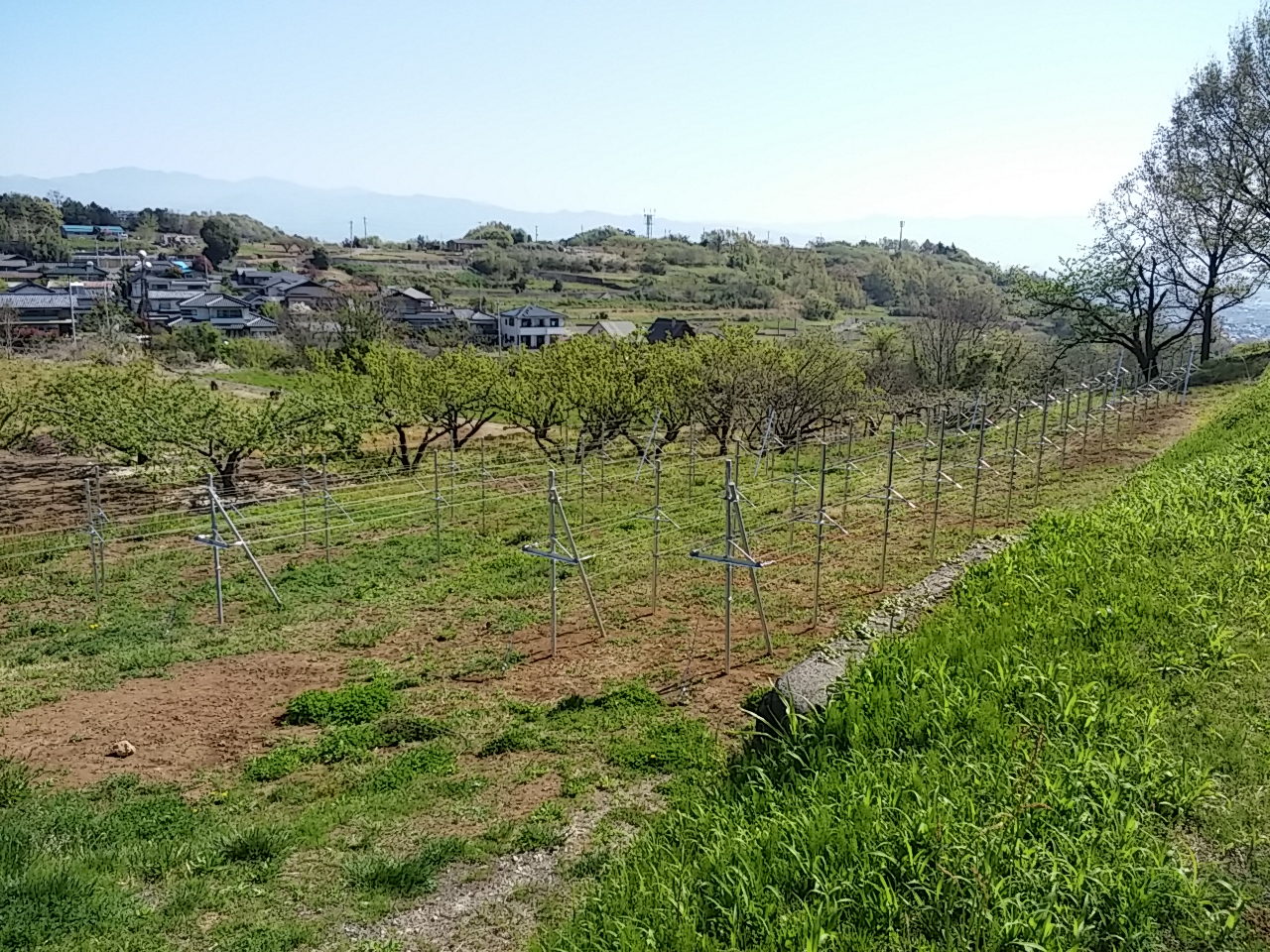 本日は地域おこし協力隊の5人が集まってブドウ棚作りです。みんなで甲州ブドウの苗を定植しました。これからが楽しみです。(稲葉)