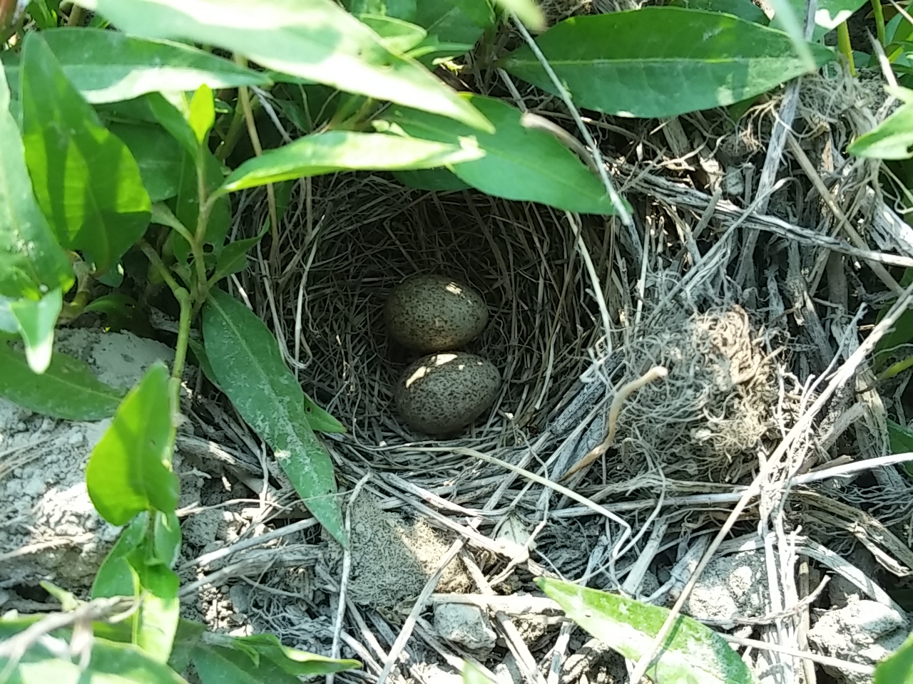 草取り中、鳥の卵を見つけました。ぜひ卵から孵り雛になり、敵から身を守り、成長して大空を羽ばたいて下さい。(稲葉)